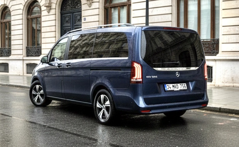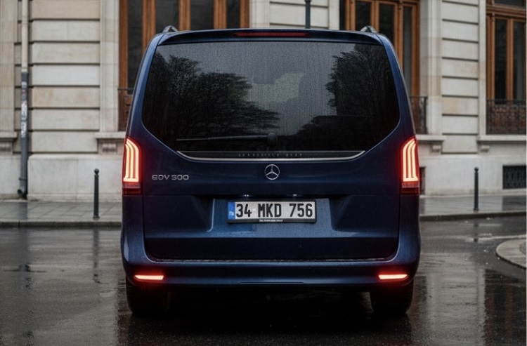 Mercedes-Benz EQV’nin ön yüzündeki o aristokratik duruş, aracın arka tasarımında yerini daha sade ama bir o kadar da güçlü ve karakteristik bir finale bırakıyor. Bir VIP aracın arkadan görünüşü, onun yoldaki ağırlığının ve sınıfsal farkının en net tescilidir. EQV, bu noktada “az ama öz” felsefesini teknolojiyle birleştiriyor. Dikey LED Stop Lambaları ve Işık İmzası: Arka tasarımın en dikkat çekici unsuru, dikey olarak konumlandırılmış ve bagaj kapağının köşelerine ustalıkla yerleştirilmiş olan ince yapılı LED stop lambalarıdır. Bu lambalar, sadece bir aydınlatma birimi değil, aracın genişliğini ve heybetini vurgulayan dikey birer imza niteliğindedir. Fren lambalarının yanma hızı ve o berrak kırmızı ışık kalitesi, arkadan gelen sürücülere aracın Mercedes-Benz teknolojisine sahip olduğunu her saniye hissettiriyor. Fonksiyonel Estetik: Bagaj Kapağı ve Cam Detayları: Arka camın genişliği, sadece içerideki yolculara panoramik bir görüş sunmakla kalmıyor; dışarıdan bakıldığında da aracın o ferah iç hacmini simgeliyor. Bagaj kapağının tam ortasında yer alan devasa Mercedes-Benz yıldızı, arka tasarımın görsel merkezini oluştururken, hemen altındaki krom çıta detayı araca yatay bir genişlik algısı katarak yere daha sağlam basan bir görüntü sergiliyor. Aerodinamik Spoyler ve Tampon Yapısı: Arka tavan çizgisinin bittiği noktada yer alan ve gövde rengiyle kusursuz bir uyum sağlayan entegre spoyler, sadece sportif bir hava katmıyor; aynı zamanda aracın üzerinden akan rüzgarın türbülans yaratmadan ayrılmasını sağlayarak menzile de katkıda bulunuyor. Tamponun alt kısmındaki minimalist difüzör hatları ve egzoz çıkışı olmayan (çünkü o tamamen elektrikli!) pürüzsüz alt yapı, Mercedes-Benz EQV’nin çevreci ve modern ruhunu temsil eden en saf detaylardan biri.